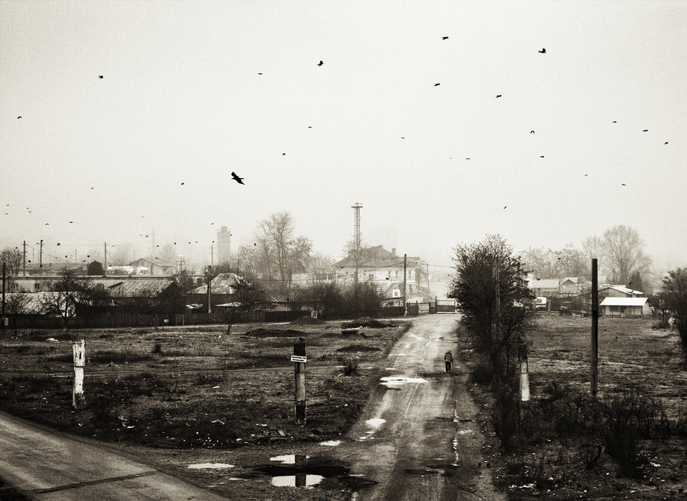 One of the most intense experiences I lived - not only from this series, but also from my whole (photographer) life -, took place the very first time I went photographing the bridge. I had been there for no more than 25 minutes, when, on the road beneath the railroad bridge, an old man appeared, with his cane. Almost simultaneously, more and more black birds - crows, to be more exact - started showing up. At a certain point, the old man turned away from me, facing the fog in the distance, as if ready to disappear into it. That precise moment, the sky literally filled with birds. The epiphanic convergence of all these elements, alongside the setting itself, simply overwhelmed me. What had been initially a prosaic scene transformed, for just a second, into a profound allegory (of life itself, if you ask me), which I was not only witnessing, but, at a deeper level, I was really living, with all my being. (That was also the moment I knew that the general approach of my project had to be a symbolical one.)